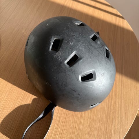 BTWIN cykelhjelm i sort. Hjelmen har flere ventilationshuller og justerbare remme under hagen. Indersiden er polstret for øget komfort. Velegnet til cykling i hverdagen og fritiden for både unge og voksne, afhængigt af hovedstørrelse og pasform.