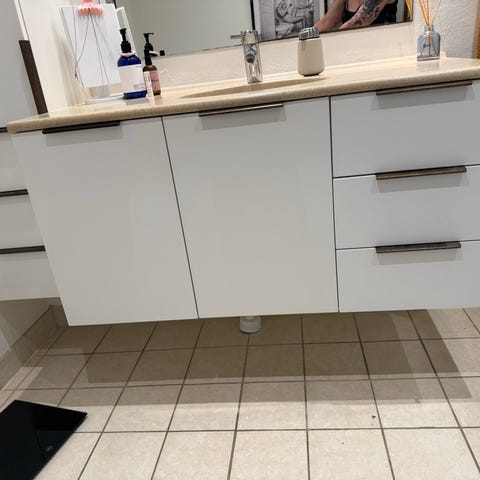 Spejl medfølger ikke da det er limet på væggen.