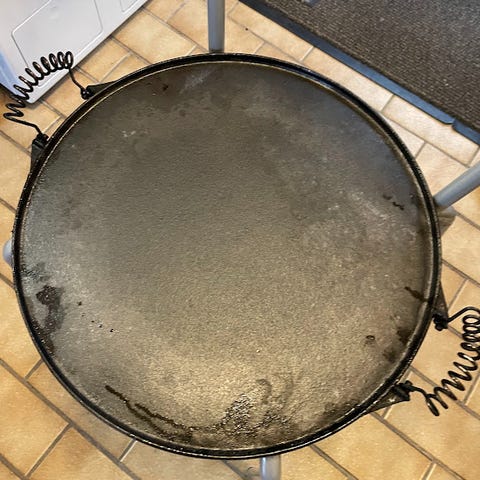 Outdoorchef halvmåne stegeplade til grill. Halvrund stegeplade i metal, velegnet til brug på grill til stegning af fx kød, grøntsager eller pandekager. Pladen har forhøjet bagkant for at holde mad og et reservoir på front kanten for at forhindre opflamning under tilberedning.