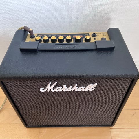 Marshall Acoustic Soloist guitarforstærker i brun finish. Forstærkeren er designet til akustisk guitar og har flere kontrolknapper på frontpanelet til justering af blandt andet volumen, tone og effekter. Der er separate indgange og regulering til instrument og mikrofon, hvilket gør den egnet til både guitar og vokal. Bagsiden har åbent kabinet med to indbyggede højttalere samt tilslutningsmuligheder til eksterne enheder. Bærehåndtag på toppen for nem transport.