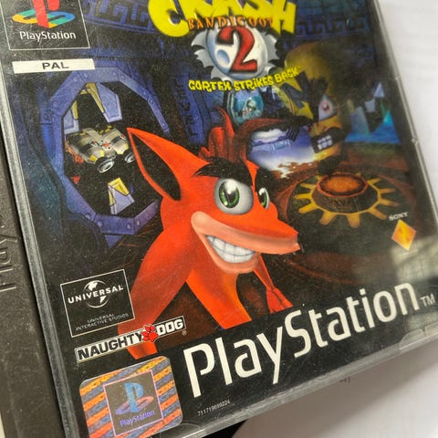 Crash Bandicoot The Wrath of Cortex Playstation 2 spil. Fysisk spil i æske til Playstation 2-konsol. Forsiden viser PEGI 3-mærkning og Platinum-udgave.
