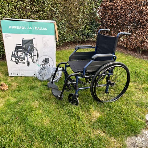 Kørestolen har sort stofsæde og -ryg samt polstrede armlæn. Stellet er i magnesium, stærkt og let, kan klappes sammen for lettere opbevaring og transport. Modellen er udstyret med store luftbaghjul med håndfælge, ekstra gode forhjul og aftagelige fodstøtter. Maksimal brugervægt ifølge mærkningen er 110 kg. Velegnet som kørestol til indendørs og udendørs brug på jævnt underlag. Og ikke mindst, er den ikke tung og nem at transportere i bilen. Nyprisen var 3800 kr. Struer