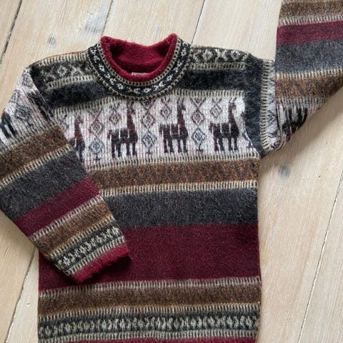 Trøje, Alpaca , Hjemnestrikket, str. 104, Flot pige cardigan i lækkert blødt alpaca uld , med sjove knapper. Helt ny.