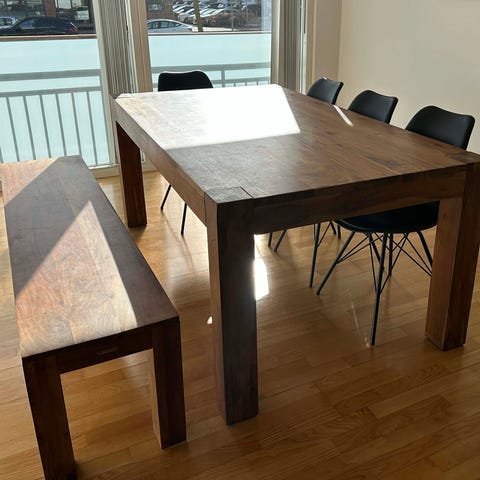 Solid wood bench that goes very well with the dining table.