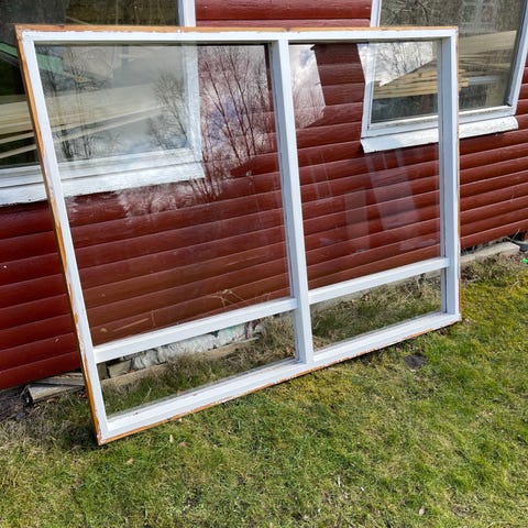 Vindue i træramme