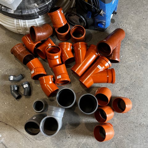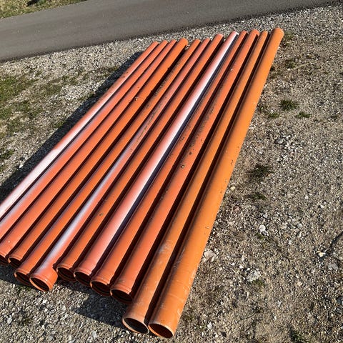 9 stk 110mm x 3m kloakrør samt 4 stk bøjninger.
