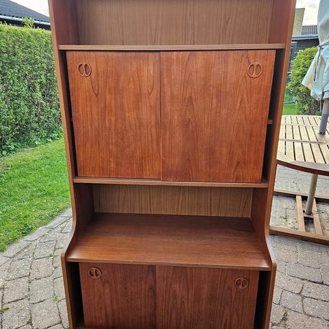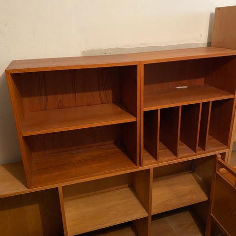 Teak reoler. Brugt som opbevaring i kælder. Tro der derfor til en kærlig hånd.