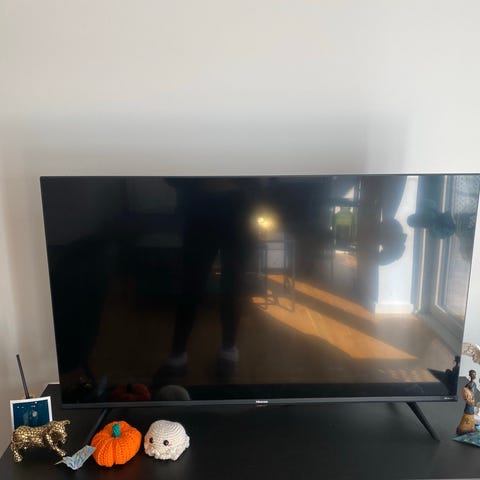 LG tv med tilhørende fjernbetjening. Tv’et står på to ben og har flad skærm. Velegnet til brug i stue, soveværelse eller som ekstra tv i hjemmet. Fjernbetjeningen har standard knapper til kanalvalg, lydstyrke og menuindstillinger.