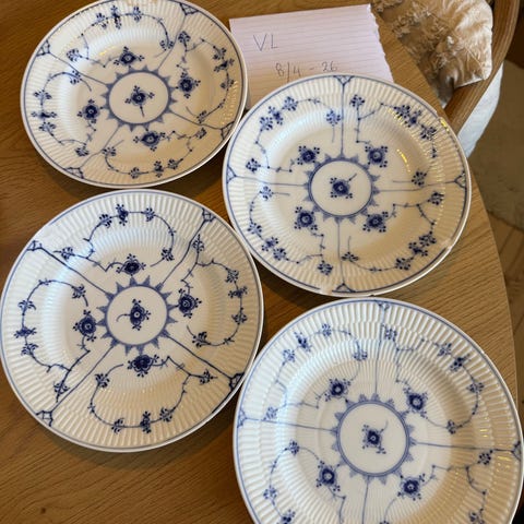 Royal Copenhagen Musselmalet Riflet dybe tallerkener hvid blå porcelæn