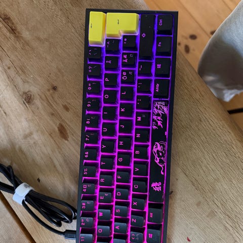 Ducky One 2 Mini til salg - medfølger original kasse. 60% mekanisk tastatur med Cherry MX switches. Sort med blå og grå keycaps. Virker perfekt. Der er klistermærker på spacebar-området - se billeder. Np. ca. 800 kr. Sælges for 250 kr. Kom gerne med et bud. Kan sendes eller afhentes i Aarhus.