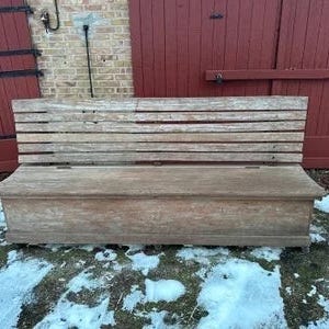 Gammel kiste-bænk,stammer fra ældre dansk færge.