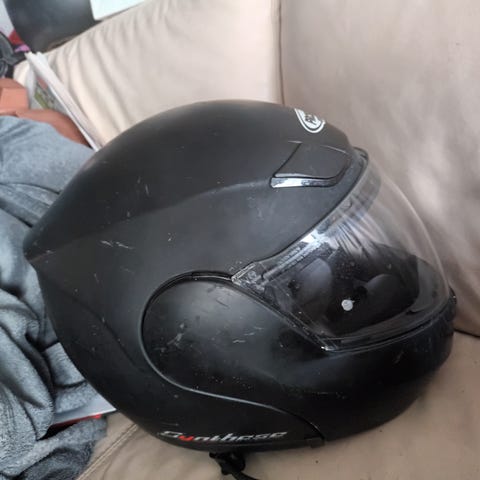 Hjelmen har været brugt meget lidt af mine børn i forbindelse med ture på motorcyklen.