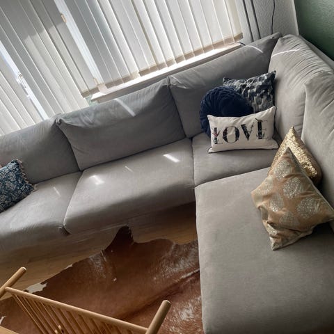 The only visual defect are cat scratches on the back (from previous owner, see photo). They are not visible when the couch is leaning against the wall.