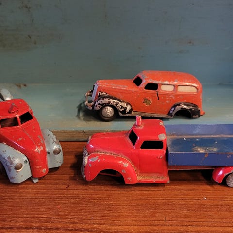 • Omfattende indhold: Masser af tandhjul, røde og grønne metalskinner, hjul med intakte gummidæk, det eftertragtede kædetræk (metalkæde) samt diverse skruer og smådele.