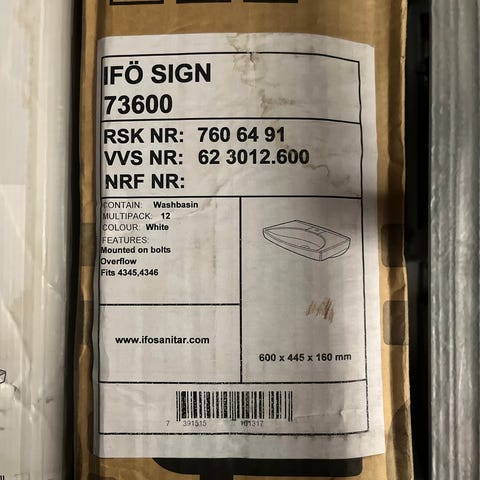 Ifö Cera 2222MP håndvask i hvid porcelæn. Rektangulær vask med afrundet forkant og hul til armatur samt afløb i midten. Mål ca. 500 x 430 mm ifølge emballagen. Egnet til montering på badeværelse som standard håndvask. Leveres i original emballage med modeloplysninger fra Ifö Sanitär AB.