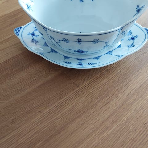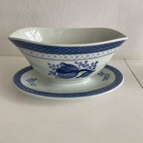 Royal Copenhagen saucekande med fad hvid/blå porcelæn