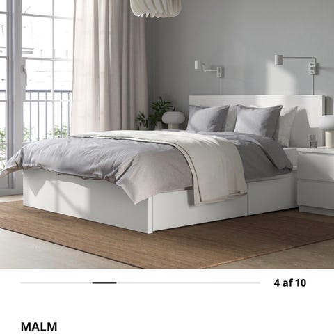 IKEA Malm seng med hovedgavl i hvid. Sengen er i størrelsen 180x200 cm og har et enkelt, rektangulært design med glatte flader. Under sengen er der integrerede skuffer til opbevaring. Medfølgende skummadras i størrelsen 180x200 cm, som på billedet er en F100 DREAMZONE skummadras fra JYSK. Sengen egner sig til to personer og passer til soveværelse med behov for ekstra opbevaringsplads under sengen. It will be available to pick it up on the 16th April only.