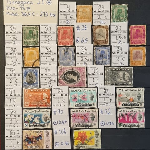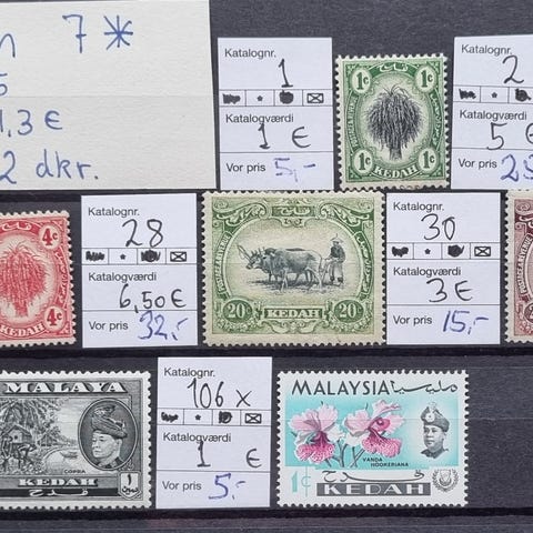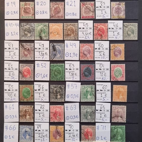 Michel 2017 katalog værdi 138,7 euro = 1.040 dkr. Inkl. 2 dollar værdier overtrykt, 5 tiger og et tjenestemærke. Opsat efter Michel katalog nummer. Perak er et sultanat på Malacca-halvøen, der indgår som en delstat i den malaysiske føderation – Malaysia. Tidligere en engelsk koloni. Ustemplet betyder uden gummi eller med hængselspor. I almindelig pæn kvalitet, enkelt småfejl. Sendes gerne, uden planche, mod dækning af porto. Spar porto, se venligst mine andre frimærke- og postkort tilbud. Sælges UNDER 10 % af katalogværdi