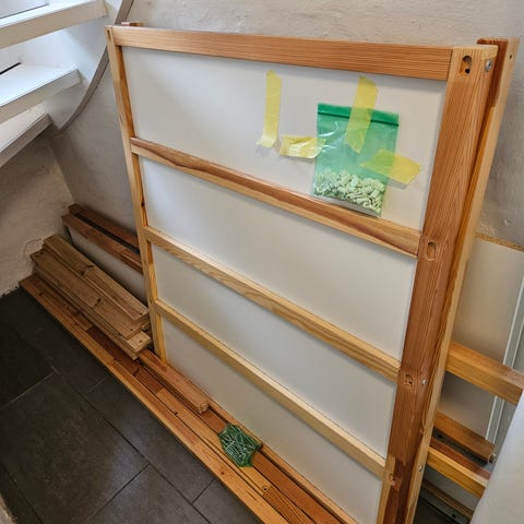 Mangler 1 skrue ved stige og har små revner ved knast i gæret i top (kan limes)