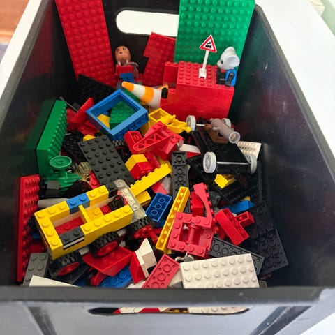 Lego andet, Store flotte legoklodser næsten ikke brugt, Små mænd og traktor og andre figurer og kasse til.