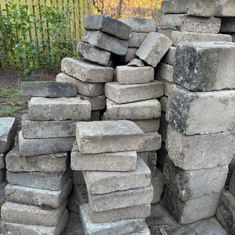 Herregårdssten: 14x21x5 cm (120-130 stk.) og 14x21x14 cm (ca. 100 stk.) Og et par hjørnesten.