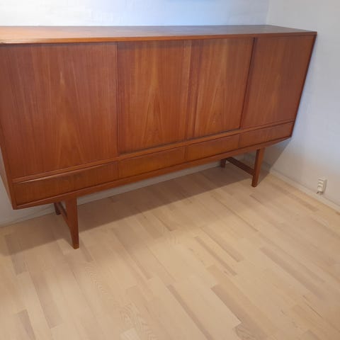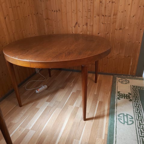 Spisebord med 6 stole + dækketøjsskab/skænk i TEAK