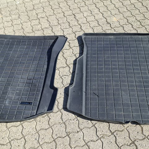 Bagagerumsbakke til Tesla Model 3. Bakken har forhøjede kanter og mønstret overflade, som hjælper med at holde snavs og væske på plads. Velegnet som beskyttelse af bagagerummets bund mod skidt, fugt og slid.