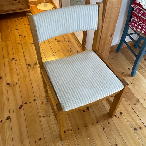 Rigtig fin stand med lette brugsspor. To af stole er lidt løse samlingen, se billedet. Men sædet er stabilt.