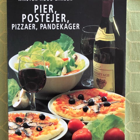 Pier,postejer og pizzaer, Kirsten Høeg-Larsen, emne: mad og vin, God kogebog med dejlige opskrifter, ingen skader.