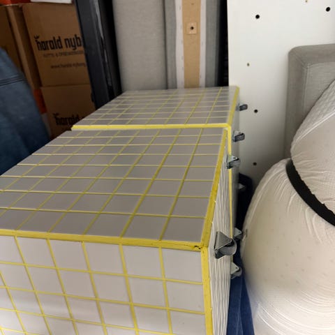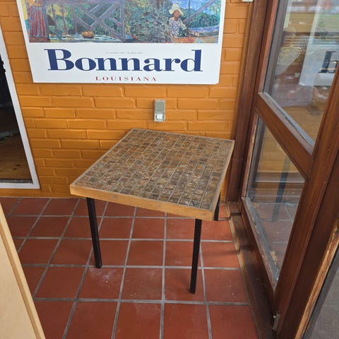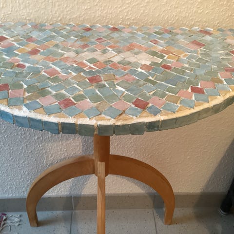 Sidebord, natbord, plantebord i mosaik på hjul - dog forsigtig med gulv når den flyttes rundt, da hjul bedst kører én vej.