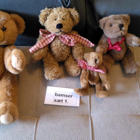 Bamser og sutteklud , Cuties, Super sødt sæt til den lille dreng . Det består af bamse / 2 bamseophæng og 1sutteklud . Det er brugt ganske lidt og fremstår som nyt . Sælges samlet for 150kr