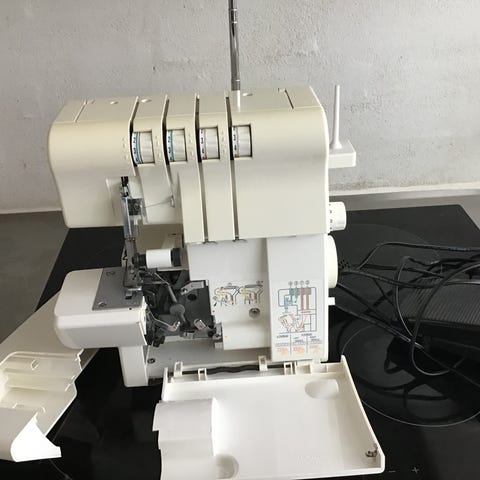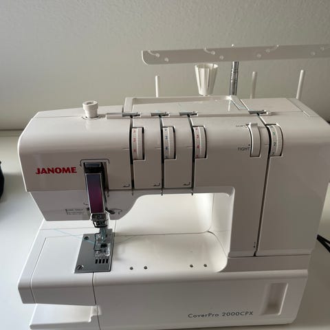 Singer husholdnings dæksøm/coverstitch. Jeg har brugt den meget få gange da mit behov for at sy i stretch har ændret sig. Jeg har købt den i Stof 2000 ved Nørreport. Den er meget brugervenlig og kan selvfølgelig prøves inden køb
