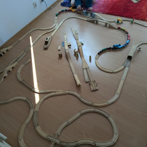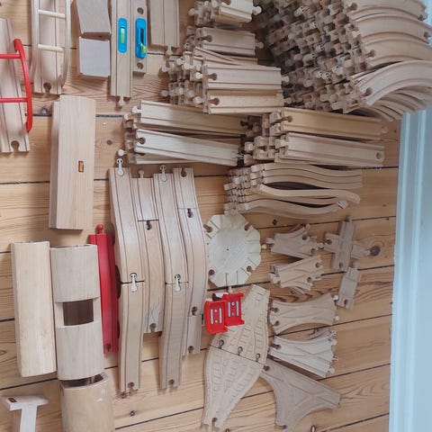 Mega meget BRIO togbane + klodser til at bygge det sammen med DUPLO, så man kan bygge de sejeste baner over gulvhøjde