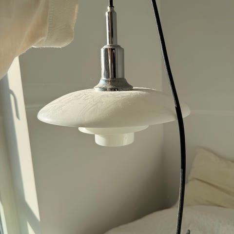 Fejlfri PH 3/2 Akademi med stofledning. Hvide opalglas uden skår og krom stel. Fra ca. 2010.