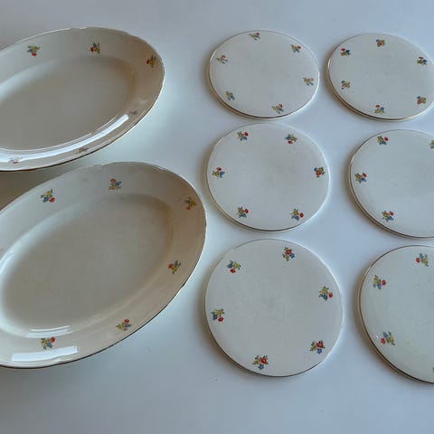 Vintage tallerkener fra Aluminia i stellet "Anne Sofie", designet af Nils Thorsson og produceret mellem 1940-1966.