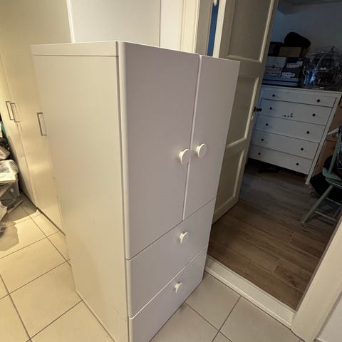 Praktisk hvidt skab fra IKEA med god opbevaringsplads.
