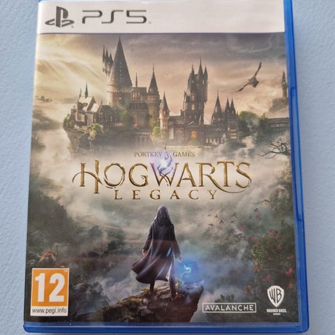 Hogwarts Legacy Playstation 5 spil. Fysisk spil på disk til PS5 med PEGI 12 aldersmærkning. Spillet foregår i Harry Potter-universet på Hogwarts og omegn og er et action-rollespil, hvor spilleren udforsker en åben verden, gennemfører missioner og udvikler sin karakter. Egnet til én spiller offline med mulighed for forskellige sværhedsgrader og tilpasning af figurens evner.