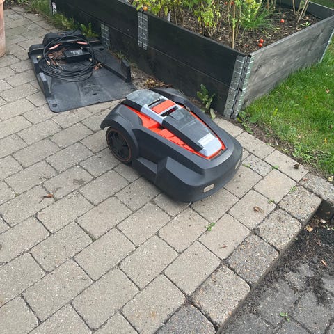 Sælges da jeg har købt ny. Virker men kan ikke få app til at fungere med maskinen. Man kan således få den til at slå græs uden klippeplan. Kan formentlig geninstalleres