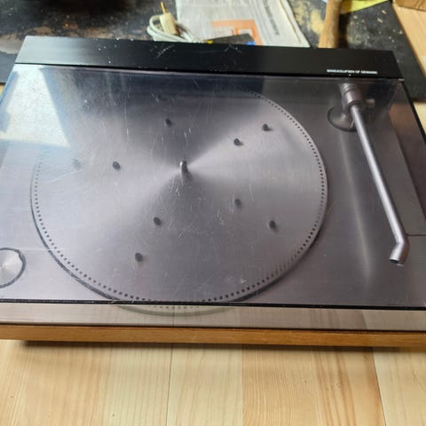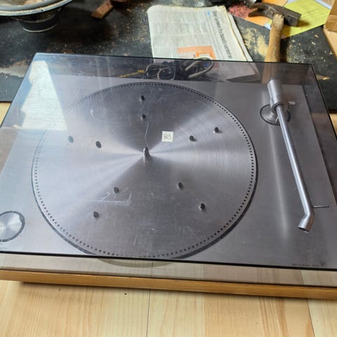 - Pladespiller: Selve skiven/tallerkenen kører rundt, og mekanikken virker til at fungere umiddelbart.