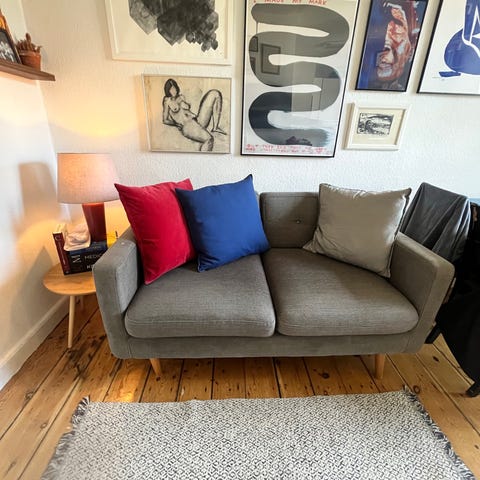 Derfor sælges den billigt – men den er stadig god at sidde i og fungerer fint. Kan afhentes på Amager hurtigst muligt, da jeg står i en flytning