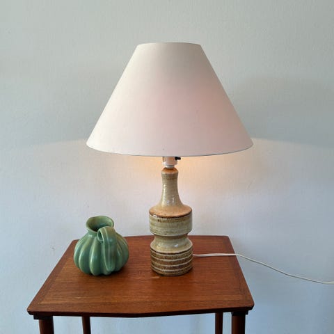 Søholm bordlampe 2113 2 - matstøvet grøn nærmest harepelsglasur. Produceret på Bornholm, design Einar Johansen. Lampe incl. skærm 37 cm høj. Skærm diameter 18 cm og højde 22 cm. JEG BRUGER IKKE FIKS OG FÆRDIG, SENDER GERNE MED DAO ECT.
