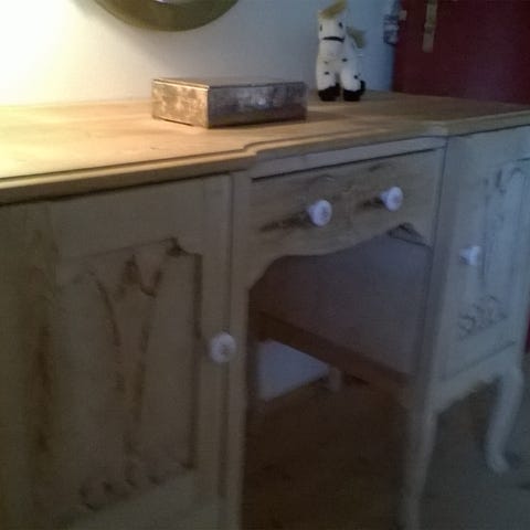 Antikt toiletmøbler med masser af skuffer og stort spejl