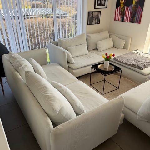 Lækker sofa fra IKEA i Söderhamn serien. Sofaen er blevet ombetrukket med et lækkert velour stof i den fineste støvede beige farve✨ mål kan ses på sidste billede - sælges på grund af flytning😭