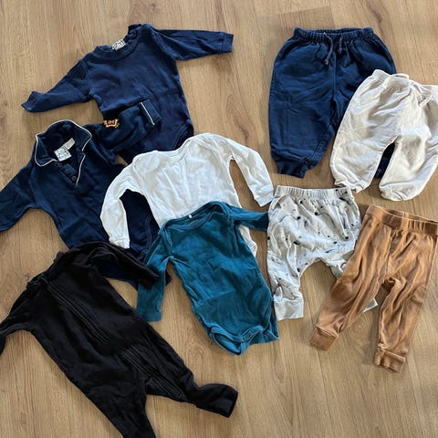 Komplet og flot tøjpakke str. 62. Ingen brugsspor, huller eller knapper. Altid vasket i allergi- og svanemærket sæbe.