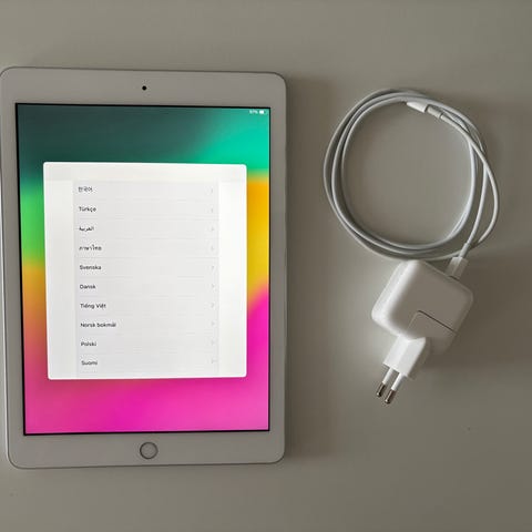iPad 6. Generation sælges. Lommeridser bagpå. Men skærmen er rigtig flot.