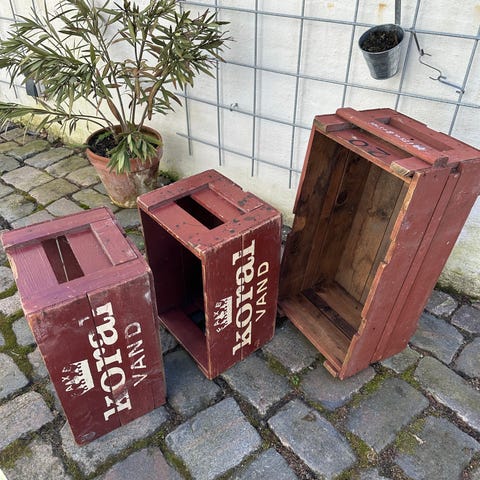 Sælger tre forskellige trækasser med masser af sjæl og patina. Perfekte til opbevaring, reolsystem eller haveindretning.