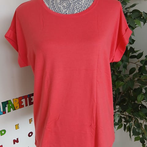 Rød top med tynde stropper, kan reguleres i længden. I pæn stand.