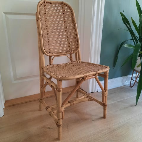 Fin fransk bambusstol med intakt flet. Sæddehøjde: 44,5.