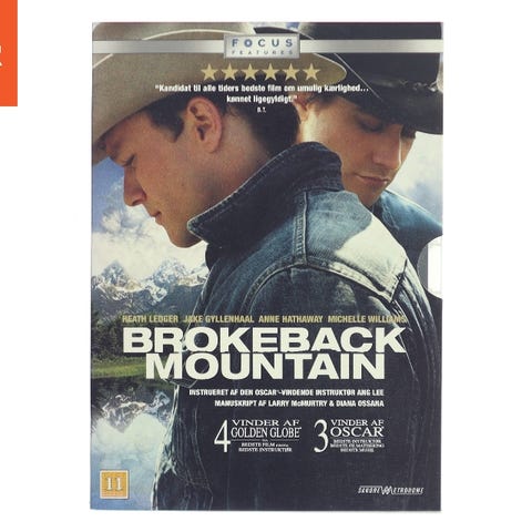 Brokeback Mountain, instruktør Ang Lee, HD DVD, drama, Brokeback Mountain er en amerikansk film fra 2005 baseret på en novelle af Annie Proulx, og instrueret af Ang Lee. Filmen handler om to cowboys som indleder et homoseksuelt forhold under en overvintring på Brokeback Mountain, og hvordan denne vinter påvirker deres liv de næste tyve år. Heath Ledger og Jake Gyllenhaal spiller hovedrollerne.