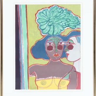 Litografi, Corneille, motiv: Kvinde og fugl, b: 165 h: 122, Bemærk størrelse 95 x 136 (122 x 165). Flot stort litografi signeret og dateret Corneille 2001. Nummeret 31/200